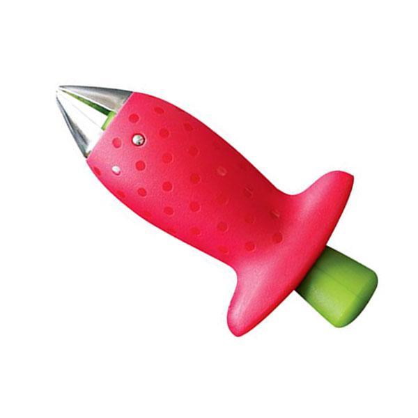 Hull your strawberries in seconds with this leaf remover. Removing stems and leaves from strawberries doesn’t get any easier than this. Colorful huller features a button-operated claw to quickly remove stems. Plastic and stainless steel construction makes this top-shelf dishwasher safe.